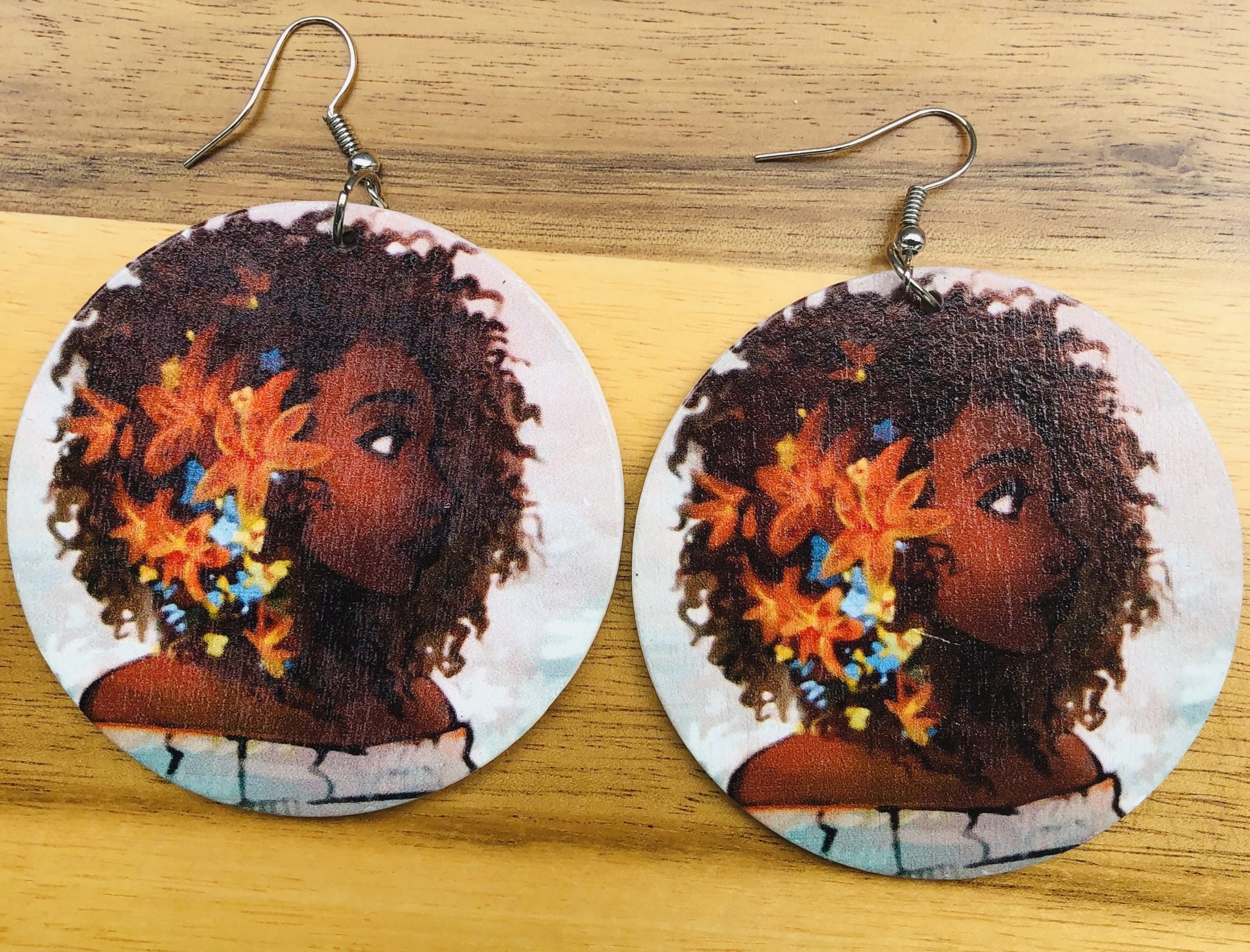 Wooden earrings with a touch of African design