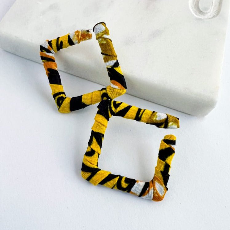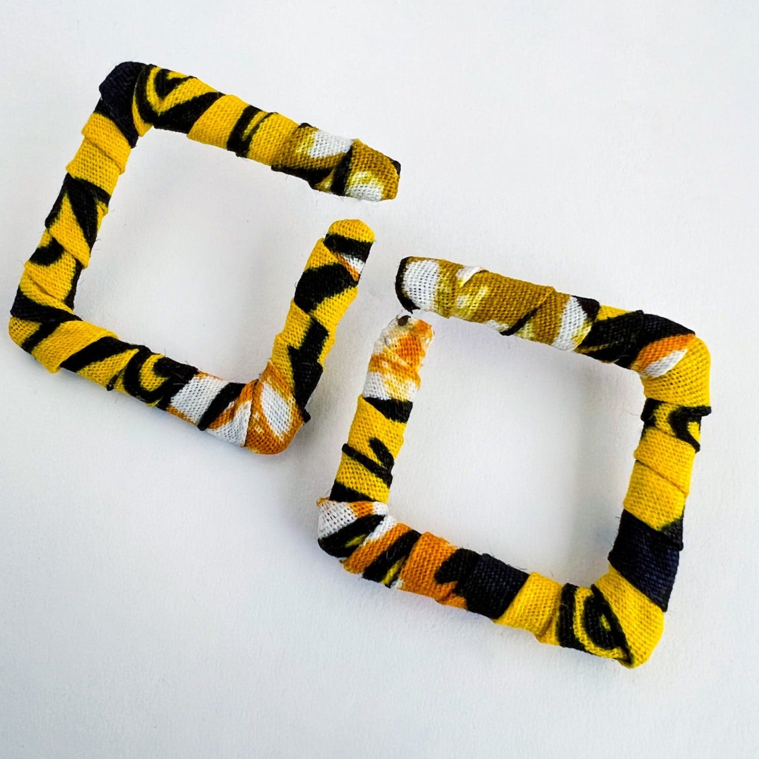 A retro style stud hand-wrapped in African Wax Print. Lightweight and easy to style.