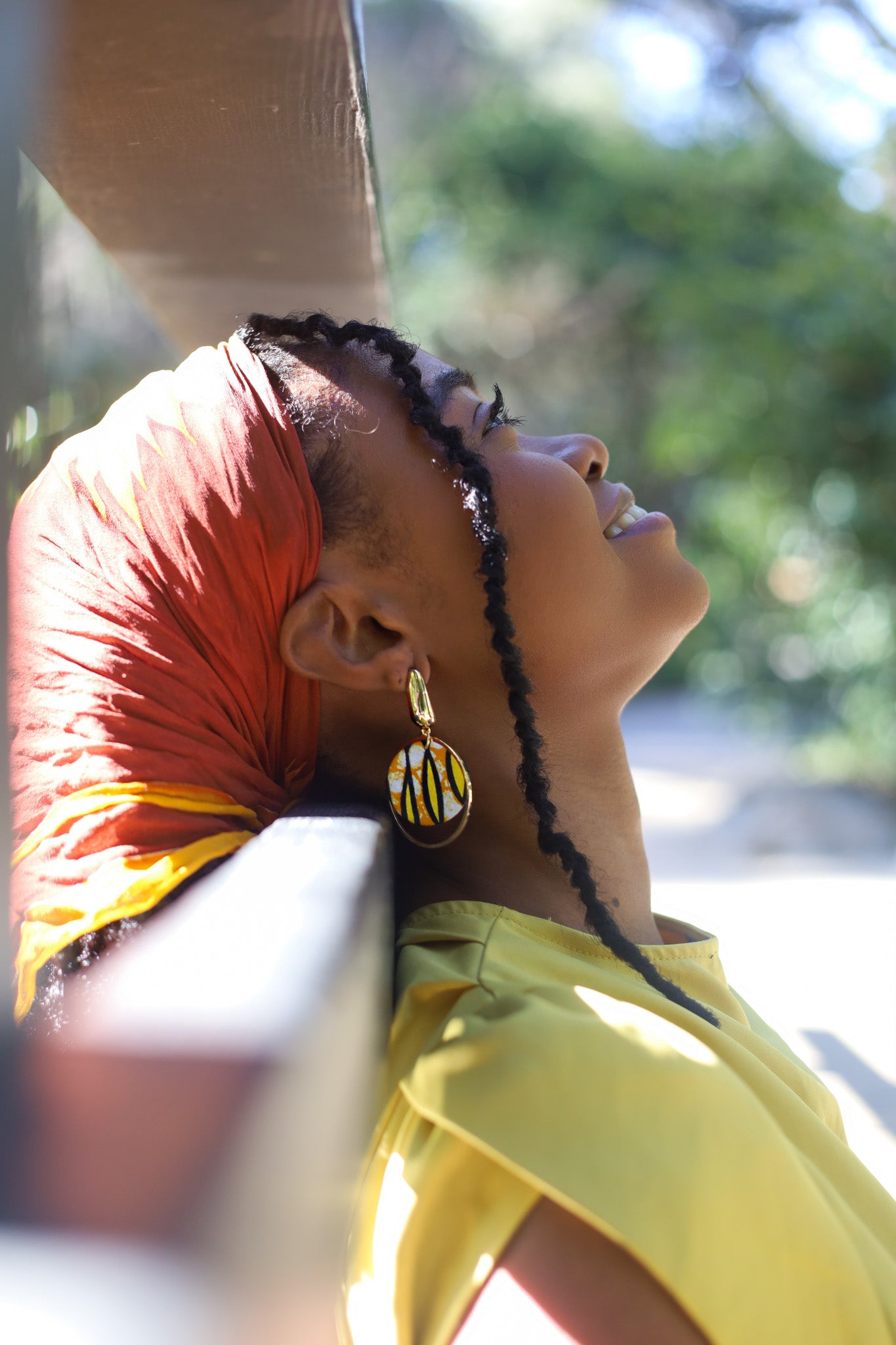 Tear drop style earrings with gold detailing and bright Ankara fabric. Stylish and gorgeous.